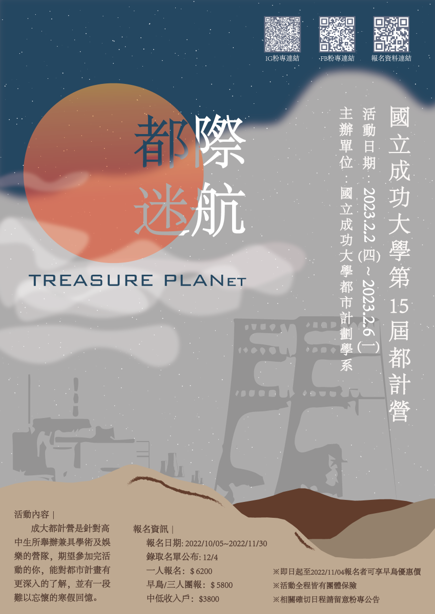 第十五屆成大都計營「都際迷航 TREASURE PLANet」報名正式開跑!!