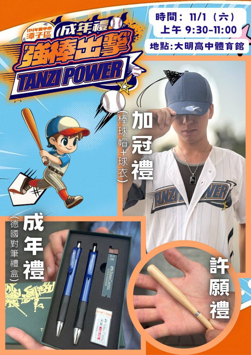 【轉知】114年臺中市潭子區成年禮「強棒出擊」活動Post author:學務處主任Post published:2025-10-17Post category:--校外活動 Post Views: 25Read more articles上一篇文章【轉知】元智大學舉辦【花Young元智】Open Day活動下一篇文章【轉知】國教署生涯輔導資源中心委託國立中興大學附屬高級中學辦理「114年度生涯影展」活動