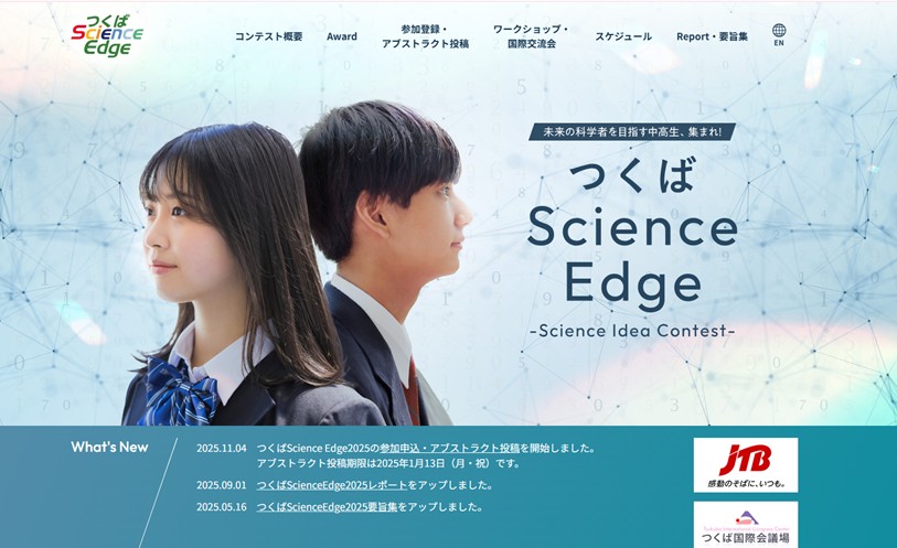 【公告】日本筑波科學競賽Tsukuba Science Edge 2026Post author:教務處教學組Post published:2025-11-06Post category:--校外活動 / --重要公告註冊時間:2025年11月4日(一)至2026年2月27日(五)摘要提交期限:2025年11月4日(一)至2026年1月12日(一)競賽日期和時間:2026年3月27日(五)至3月28日(六)場地:筑波國際會議中心https://www.epochal.or.jp/參與者:國中生及高中生競賽官網:https://www.jtbbwt.com/files/user/ScienceEdge/index.html~請同學踴躍報名參加~ Post Views: 80Read more articles上一篇文章【轉知】國立臺中教育大學原訂114年11月22日至23日辦理「114年度都會區原住民族學生文化課程體驗營:曙光下的歐佈諾伙’Opono ho ~走讀萬山部落~」,因故延至114年12月13日至14日