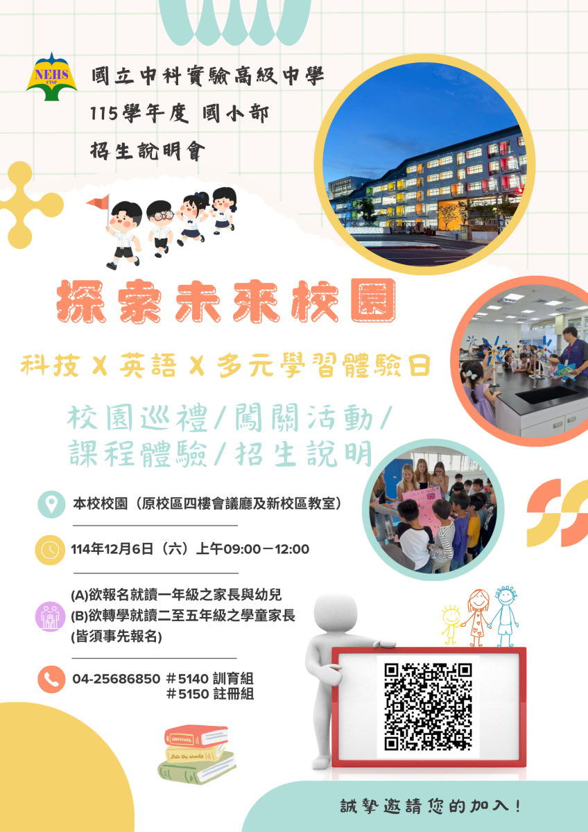 📞 諮詢電話:04-25686850 分機5140訓育組 5150註冊組