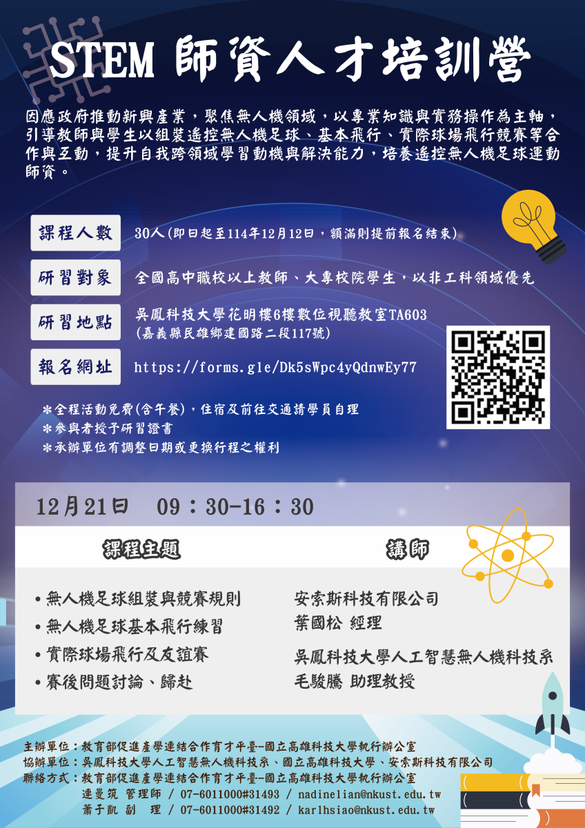 (三) 課程人數:上限30人(報名時間為即日起至114年12月12日,額滿則提前報名結束)。