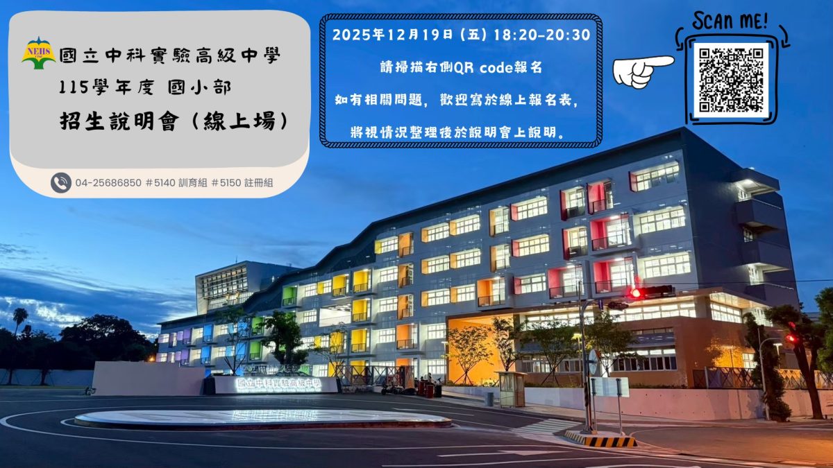 【招生】115學年度國小部招生說明會線上報名(線上場12/19)