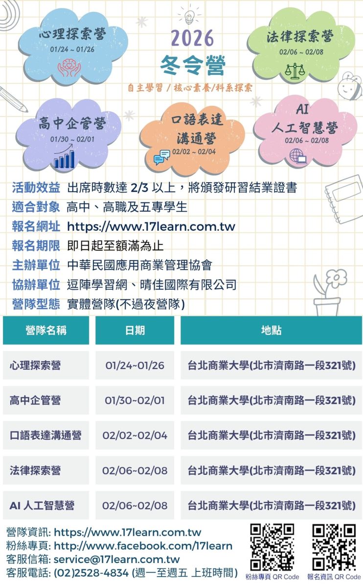 (二)高中企管營:2026/1/30(週五)~2026/2/1(週日)