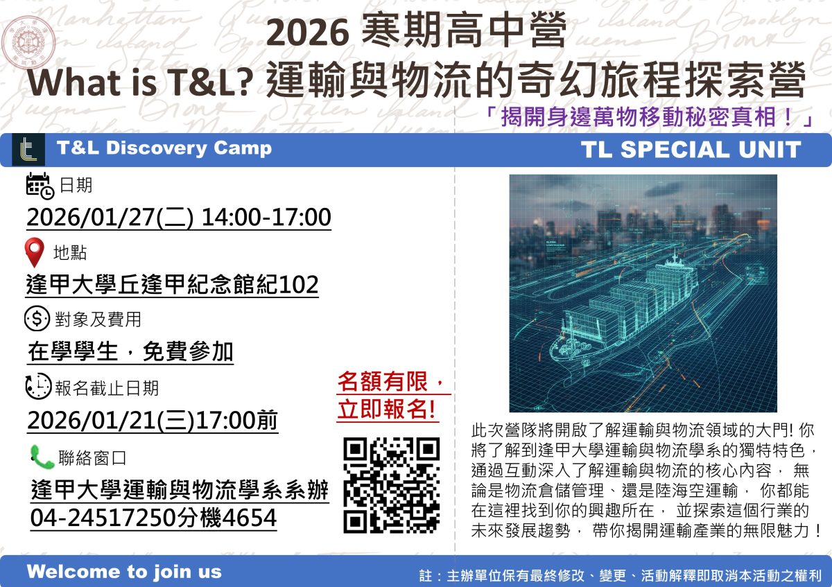 一、旨揭營隊涵蓋多個課程,包含物流倉儲管理、陸海空運輸等,旨在讓學員透過有趣的互動,了解學系的特色並探索行業的未來發展趨勢。