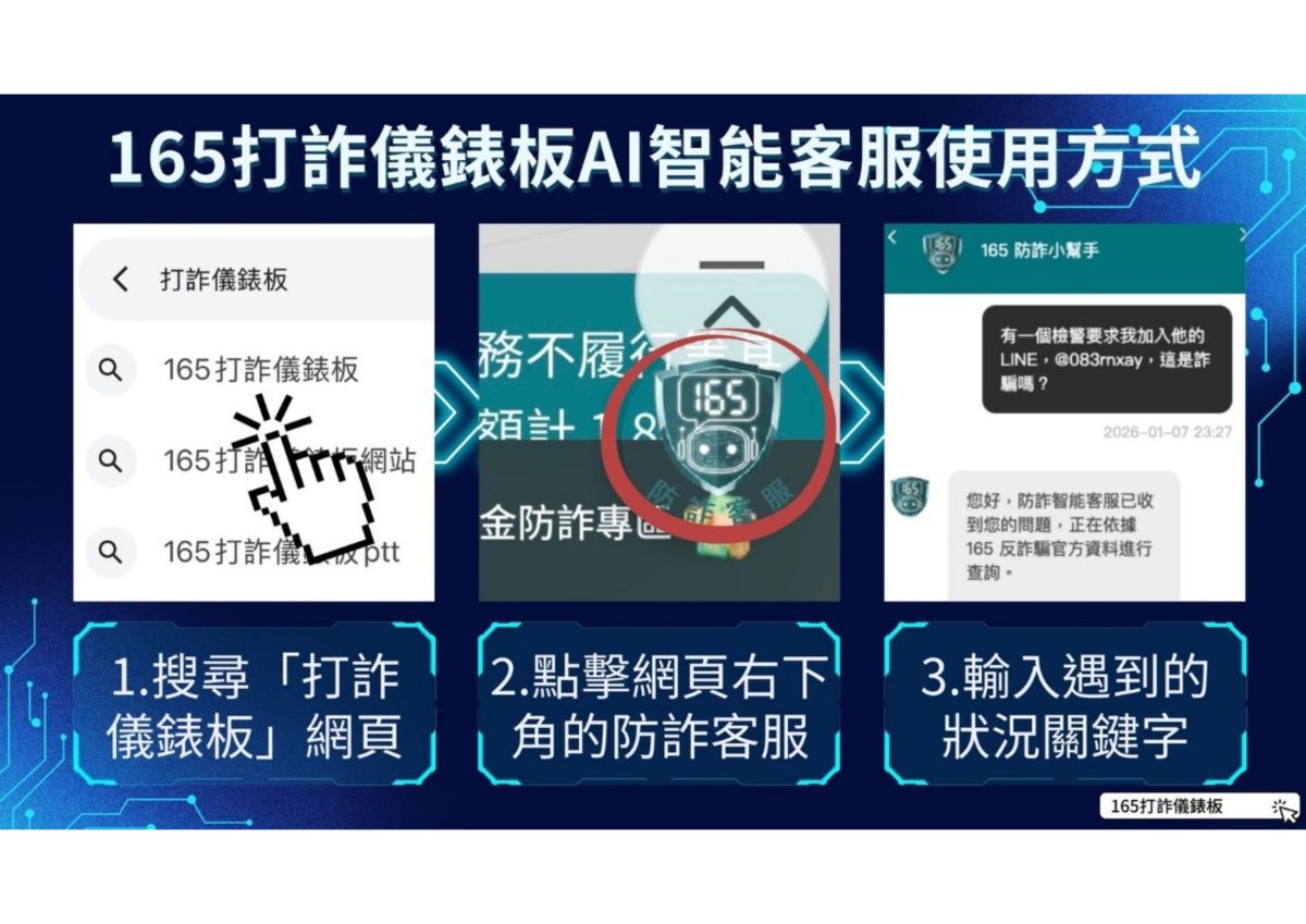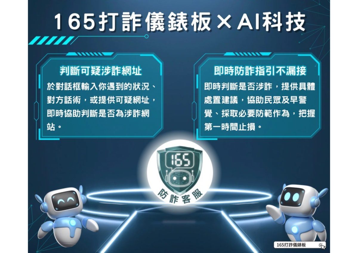 【轉知】內政部提升全民防詐意識「165打詐儀錶板」AI智能客服小幫手功能。Post author:生輔組長Post published:2026-03-02Post category:--重要公告 / -國中部 / -學務處 / -雙語部 / 最新消息 / 生活輔導組一、依教育部115年2月9日臺教學(五)字第1150015004號函轉內政部115年2月5日內授警字第1150878118號函辦理。二、為因應詐騙手法快速演變,內政部警政署於「165打詐儀錶板」導入AI智能客服小幫手,整合防詐資料庫提供即時互動諮詢,可依民眾描述情境辨識詐騙風險並提供具體處置建議;另具備涉詐網址即時查詢功能,可判斷網站是否具詐騙風險。 Post Views: 27Read more articles上一篇文章【升學】「115學年度四技二專甄選入學招生」簡章分則修訂事項下一篇文章【轉知】中小學使用生成式人工智慧注意事項2.1