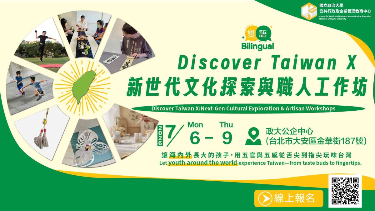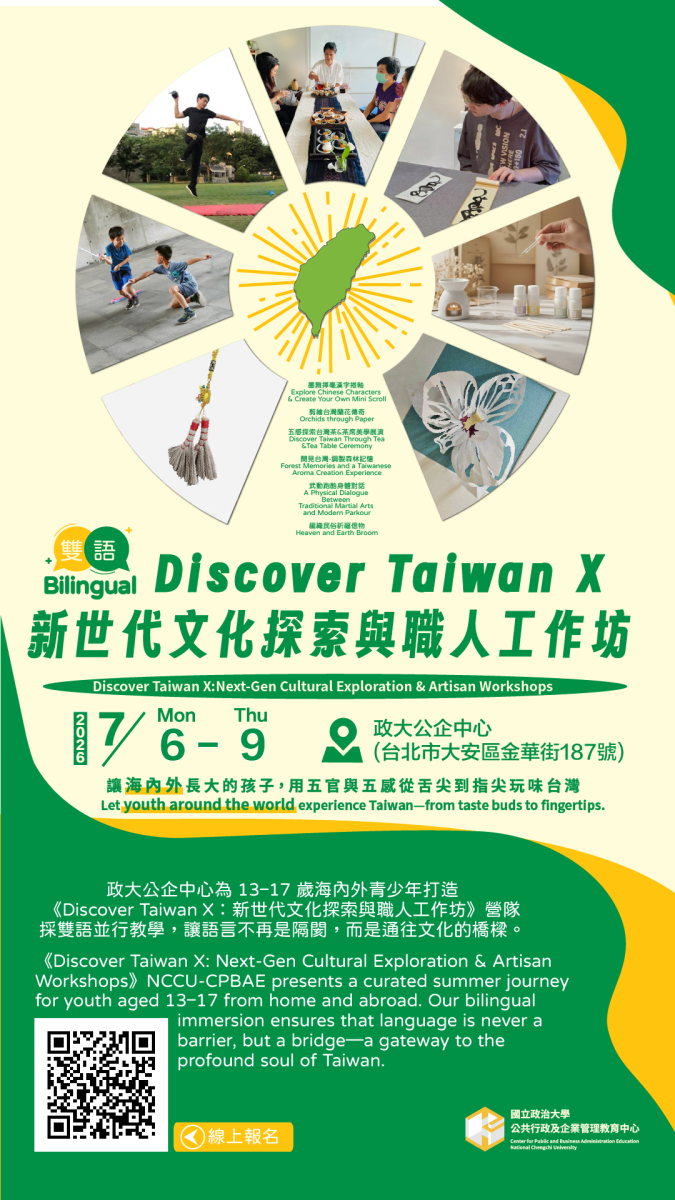 語素養」與「台灣文化」的雙向旅程,國立政治大學公企中心辦理「Discover Taiwan X 新世代文化探索與職人工作坊」(以下簡稱本營隊)。