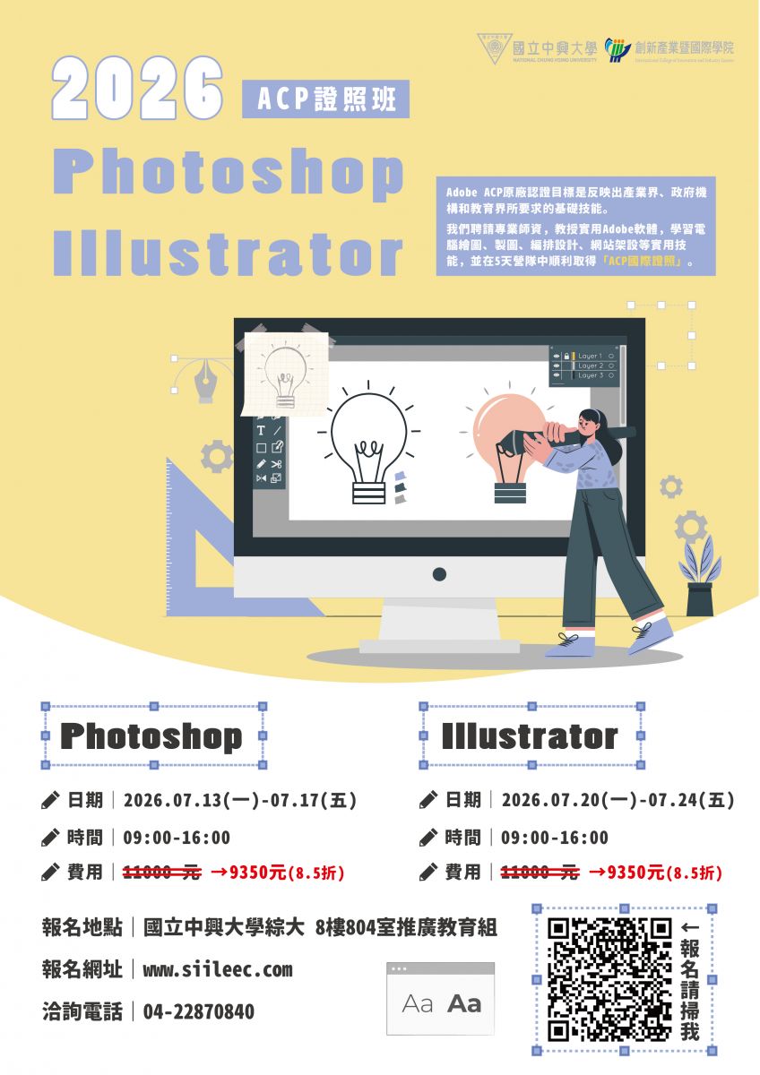 三、 本校同步推出多項暑期熱門課程與證照輔導,包括「Python程式系列」、「人工智慧工程素養認證輔導」、「ACP國際證照-Photoshop與Illustrator考照班」、「SSE色彩學證照輔導」及「CCS生成式AI基礎能力認證班」等,內容結合理論與實作,適合國高中生探索興趣並強化專業能力。