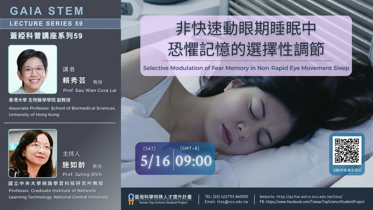 (二) 講題:非快速動眼期睡眠中恐懼記憶的選擇性調節。